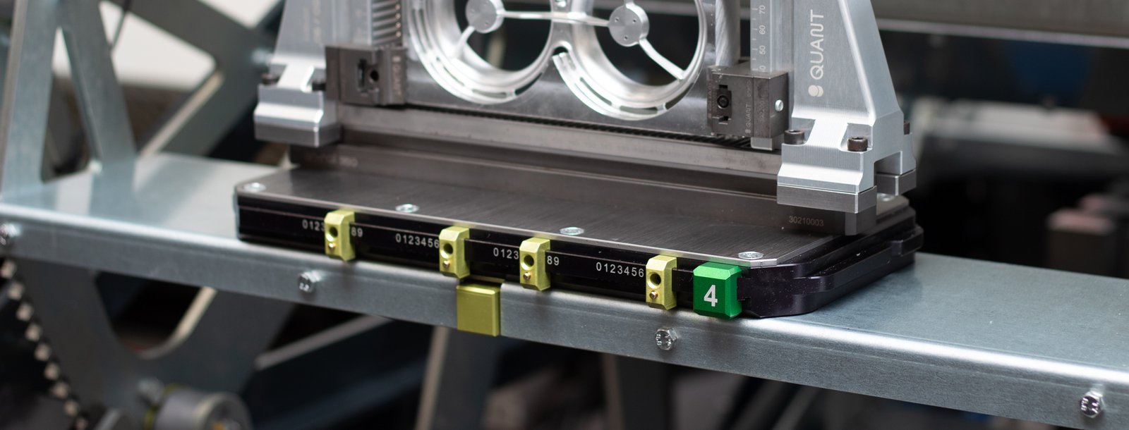 Mit bis zu 12 Stationen können verschiedene Vorrichtungen und Programme hinterlegt werden. Dank der codierten Paletten erkennt die Maschine automatisch das richtige Bearbeitungsprogramm, wodurch unterschiedliche Teile ohne Umrüsten nacheinander gefertigt werden können.